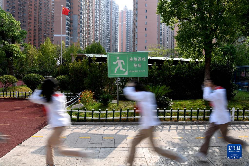 9月18日,合肥市朝霞小學(xué)的學(xué)生在進(jìn)行疏散演練。