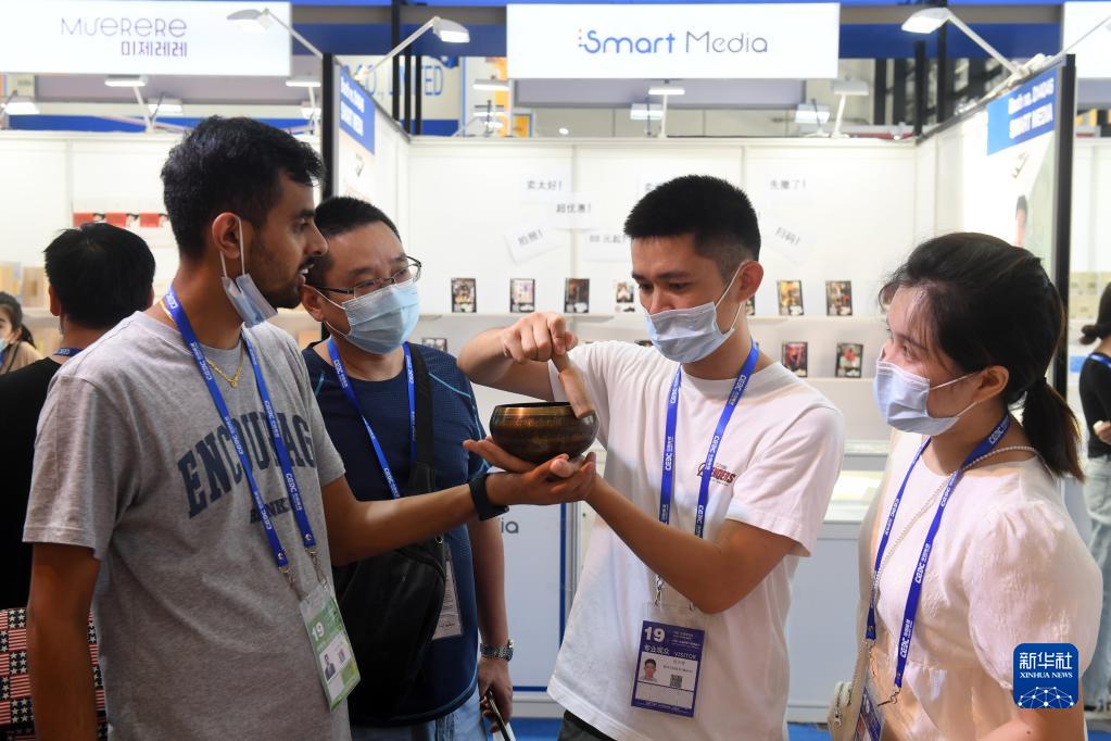 9月18日,觀(guān)眾在東博會(huì )“一帶一路”國際展區體驗來(lái)自尼泊爾的商品。