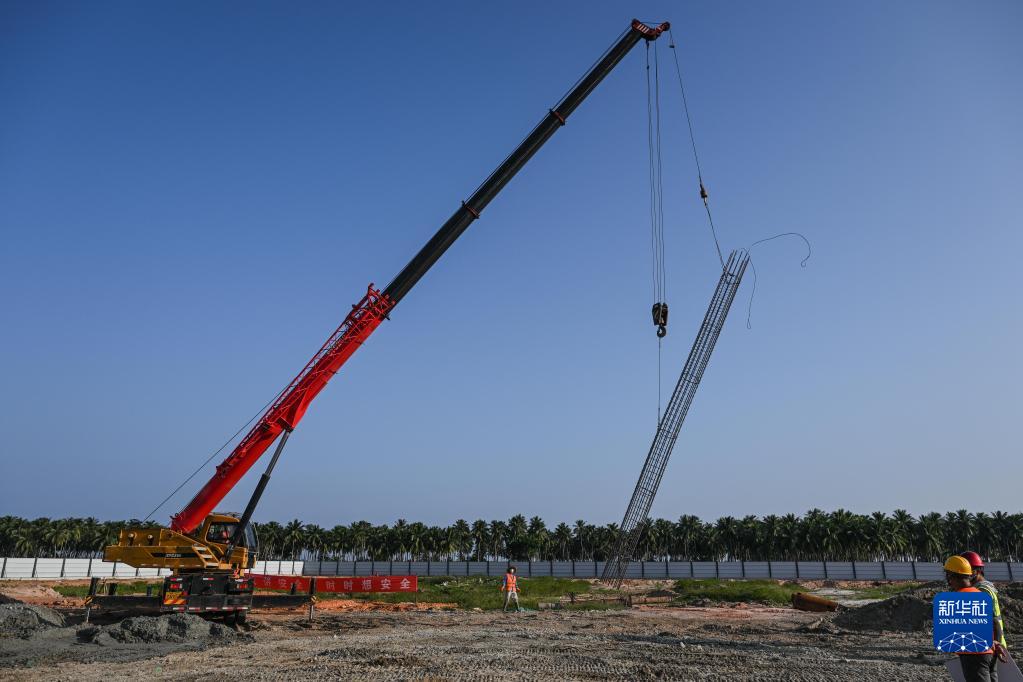 9月17日,工人在位于海南文昌的海南商業(yè)航天發(fā)射場(chǎng)項目工地施工。