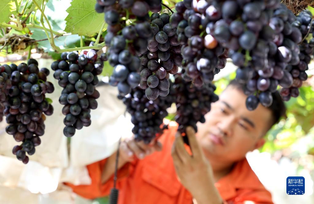 9月17日,山東省棗莊市齊村鎮前良村農民在果園采摘葡萄。