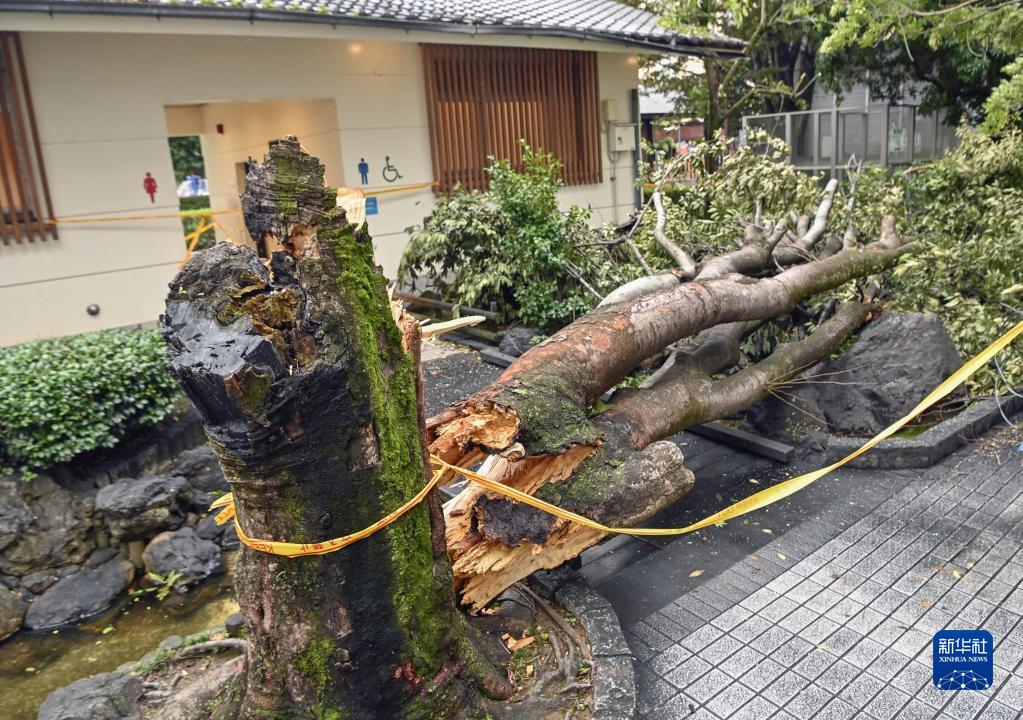 這是9月19日在日本高知縣拍攝的被強風(fēng)折斷的樹(shù)木。