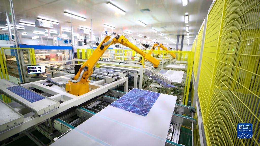9月17日拍攝的山東省東營(yíng)經(jīng)濟技術(shù)開(kāi)發(fā)區潤馬光能科技有限公司太陽(yáng)能電池板生產(chǎn)線(xiàn)。