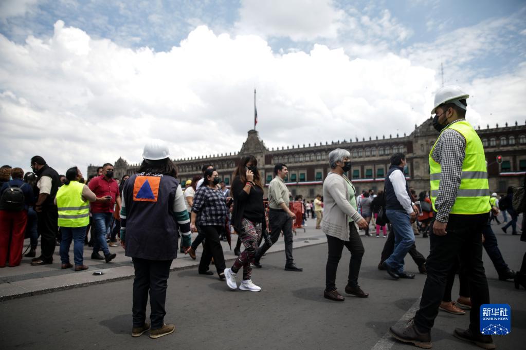 9月19日,在墨西哥首都墨西哥城,人們在一處廣場(chǎng)避險。