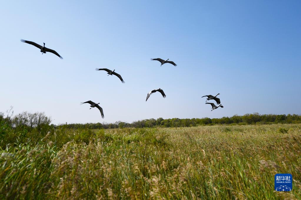 9月18日,鳥(niǎo)類(lèi)在山東黃河三角洲國家級自然保護區內飛翔。
