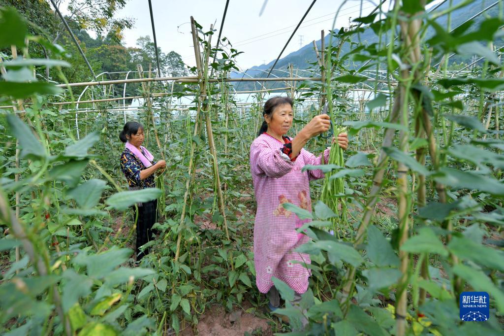 9月20日,宣恩縣萬(wàn)寨鄉向家村的村民在采收豇豆。