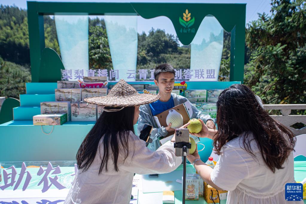 9月20日,主播在云和縣元和街道梨莊村的梨園中直播銷(xiāo)售云和雪梨。