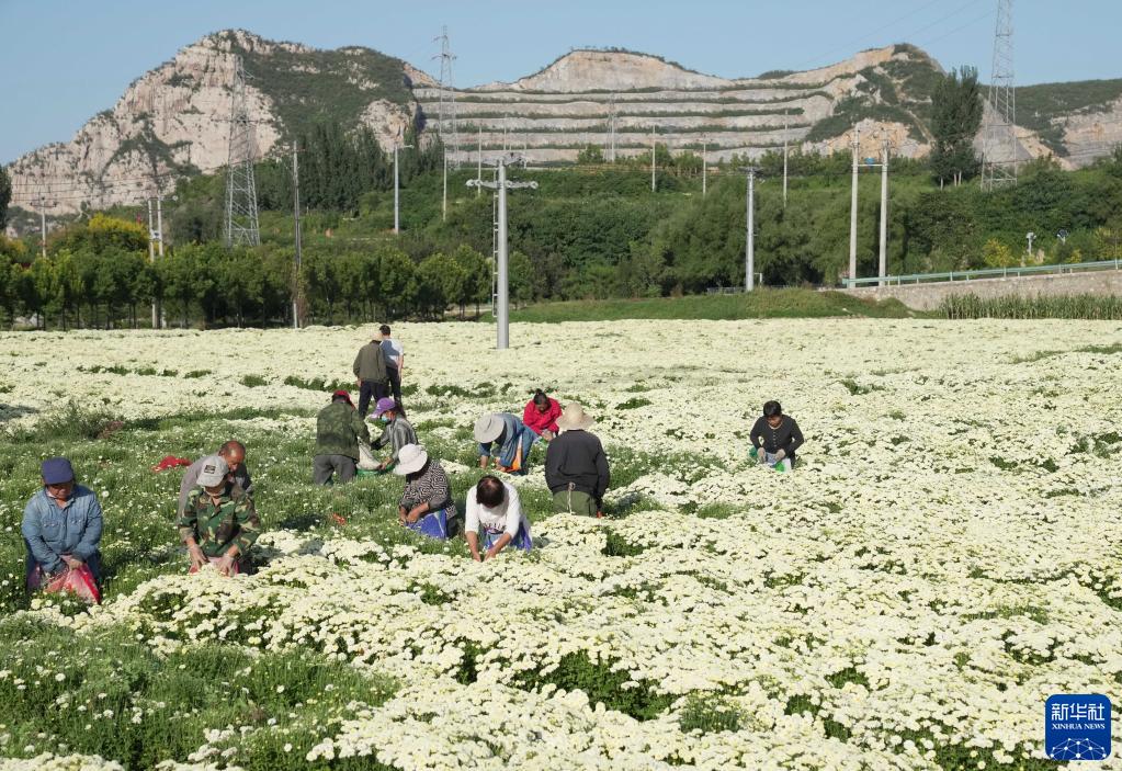 9月20日,石家莊市井陘礦區賈莊鎮農民在采摘太行白菊。