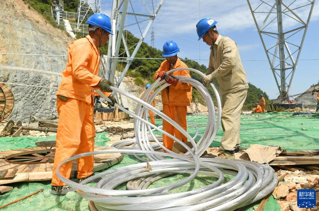 9月21日,國網(wǎng)福建省送變電工程有限公司施工人員在寧德市霞浦縣的B7塔處架線(xiàn)施工。