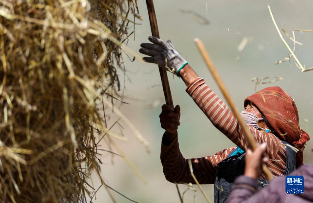 9月21日,拉薩市林周縣邊林鄉當杰村的村民在收集秸稈。