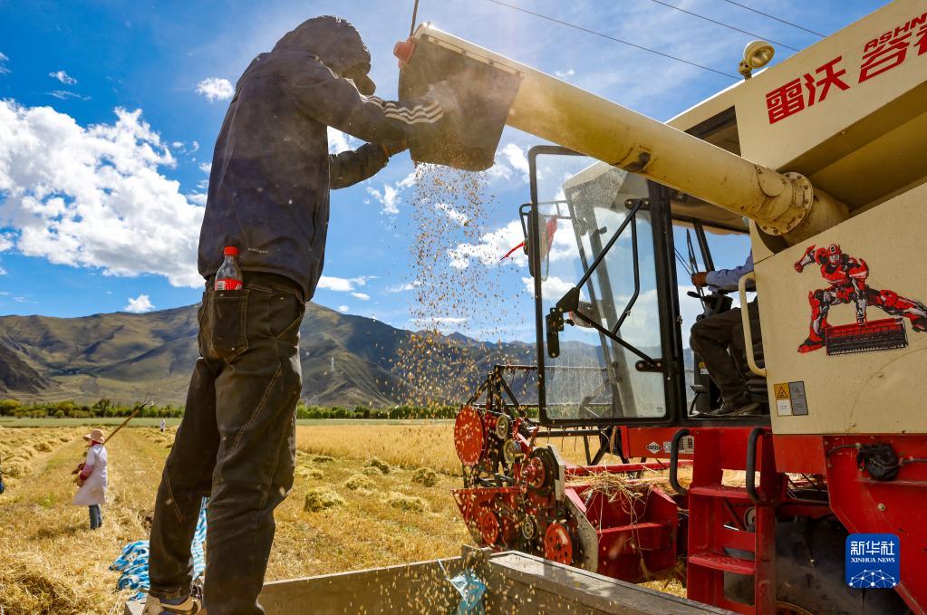 第五個(gè)中國農民豐收節在即,西藏自治區拉薩市林周縣的田間地頭一片繁忙。據了解,林周縣目前累計糧食收獲面積為12.43萬(wàn)畝,已收獲秋糧總產(chǎn)量預估6萬(wàn)噸,豐收在望。