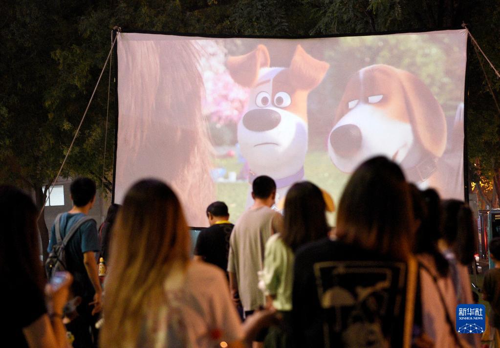 市民在西影“電影圈子”內觀(guān)看露天電影(9月11日攝)。