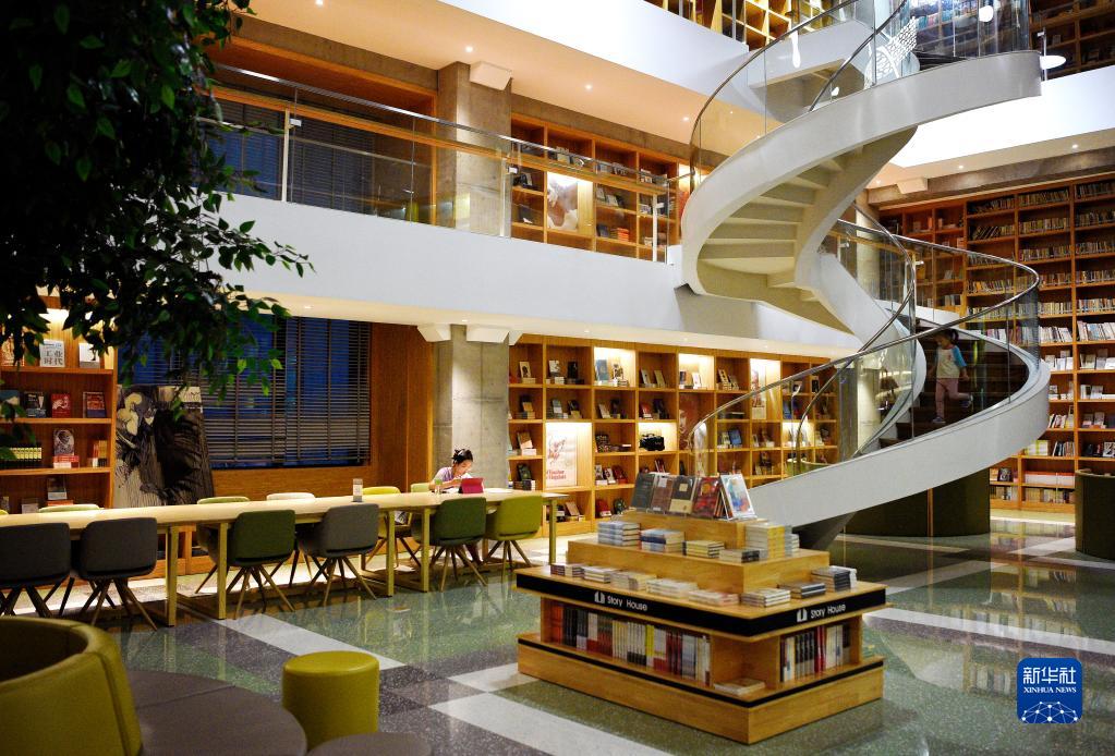 市民在西影“電影圈子”里的藝術(shù)書(shū)吧內(9月12日攝)。
