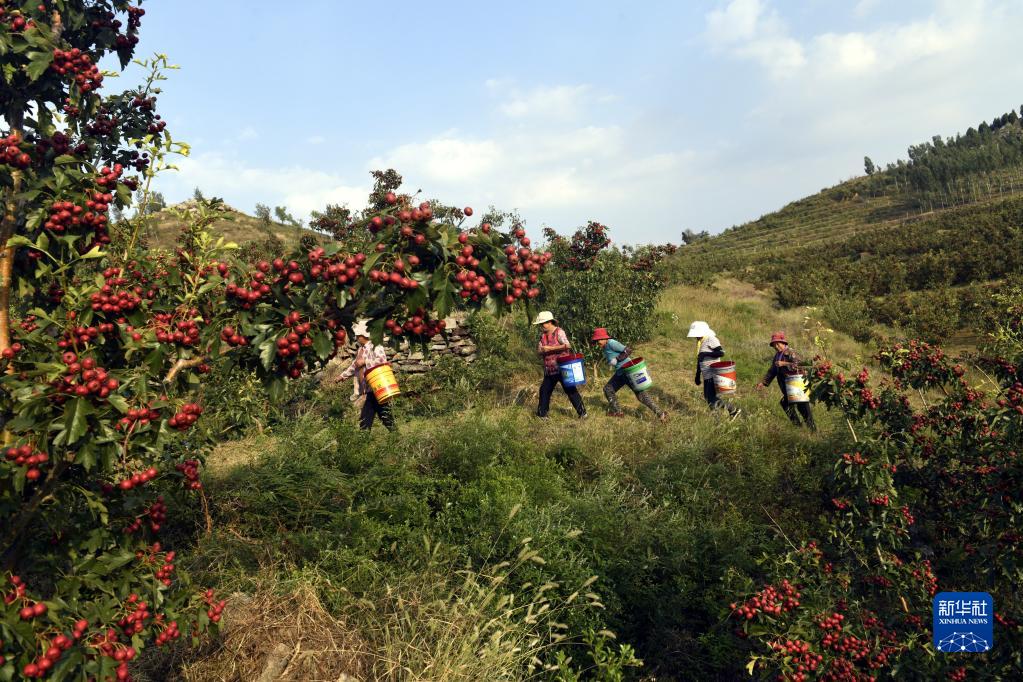 在山東省新泰市劉杜鎮南流泉村,紅彤彤的山楂掛滿(mǎn)枝頭,村民們忙著(zhù)采摘、包裝、交易。劉杜鎮是遠近聞名的山楂產(chǎn)地,全鎮山楂種植面積2.3萬(wàn)畝。