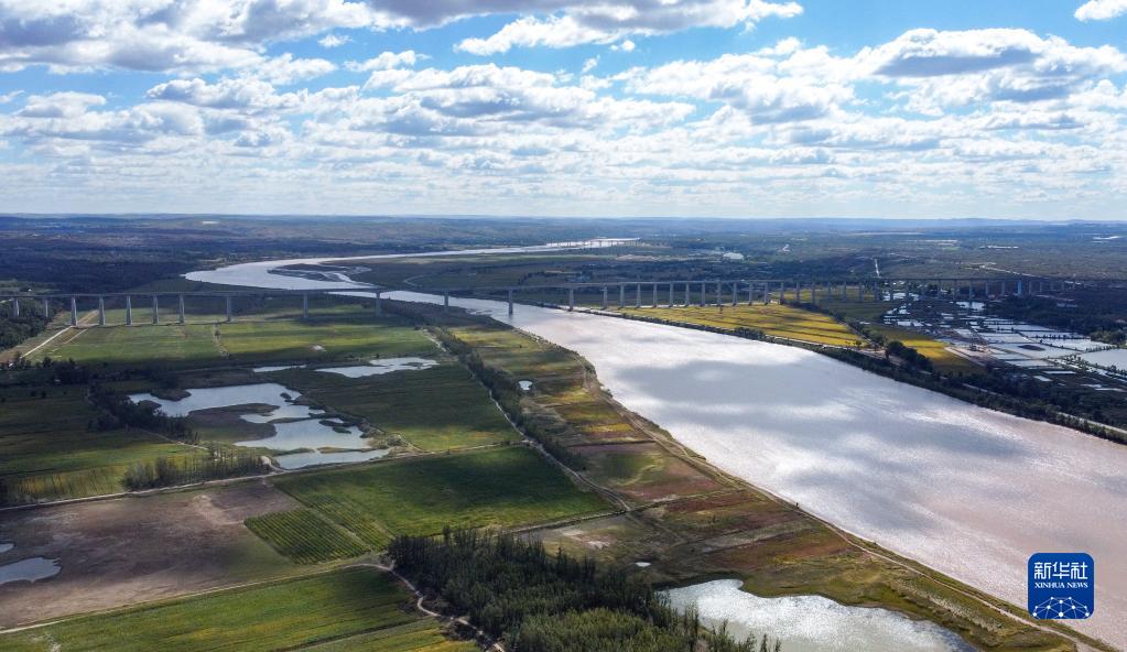 9月22日在呼和浩特市托克托縣拍攝的黃河風(fēng)光(無(wú)人機照片)。
