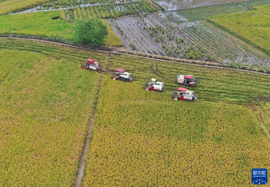 時(shí)值秋收,農業(yè)大省四川省各地農田里一片繁忙的收割景象。
