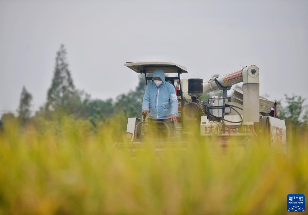 時(shí)值秋收,農業(yè)大省四川省各地農田里一片繁忙的收割景象。