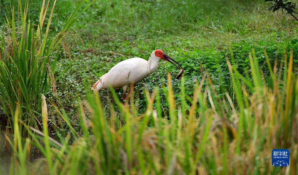 陜西省漢中市洋縣位于秦嶺南麓、漢中盆地東緣,是世界聞名的“朱鹮之鄉”。目前當地生活的朱鹮有7000多只,秋收時(shí)節,朱鹮在田間飛舞嬉戲,構成一幅自然和諧的田園美景。