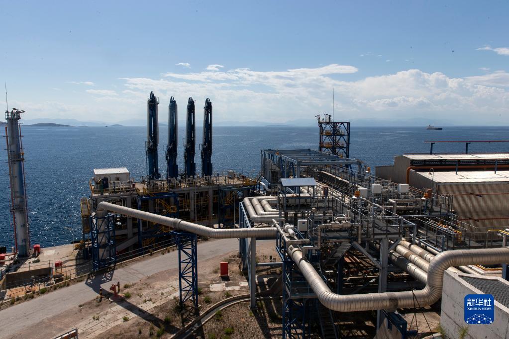 這是9月21日拍攝的希臘雷維蘇薩液化天然氣接收站內的設施。