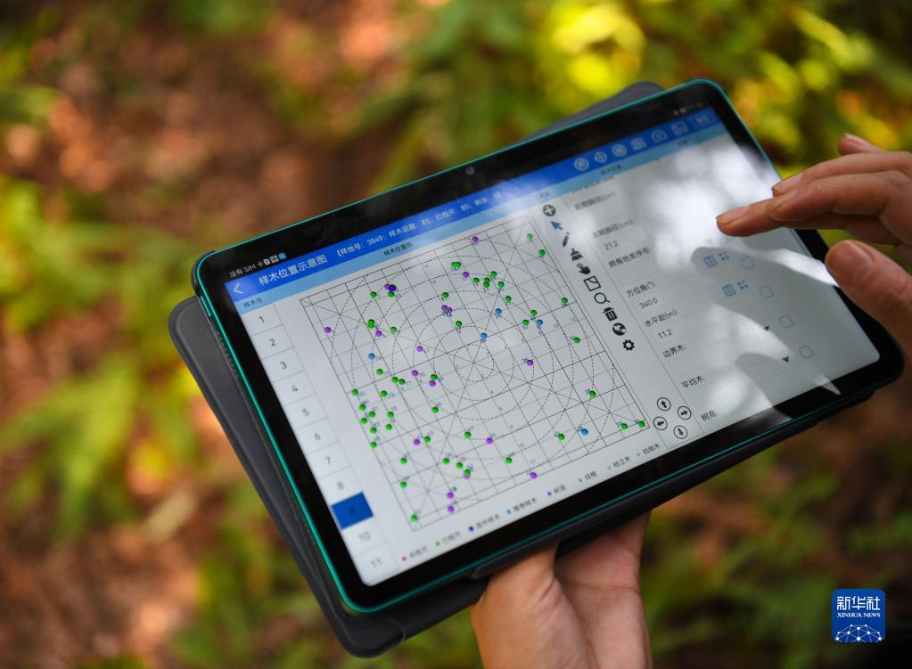 9月22日,在廣東韶關(guān)樂(lè )昌市張溪村的生態(tài)監測樣地,白拉曲珍查看軟件數據。
