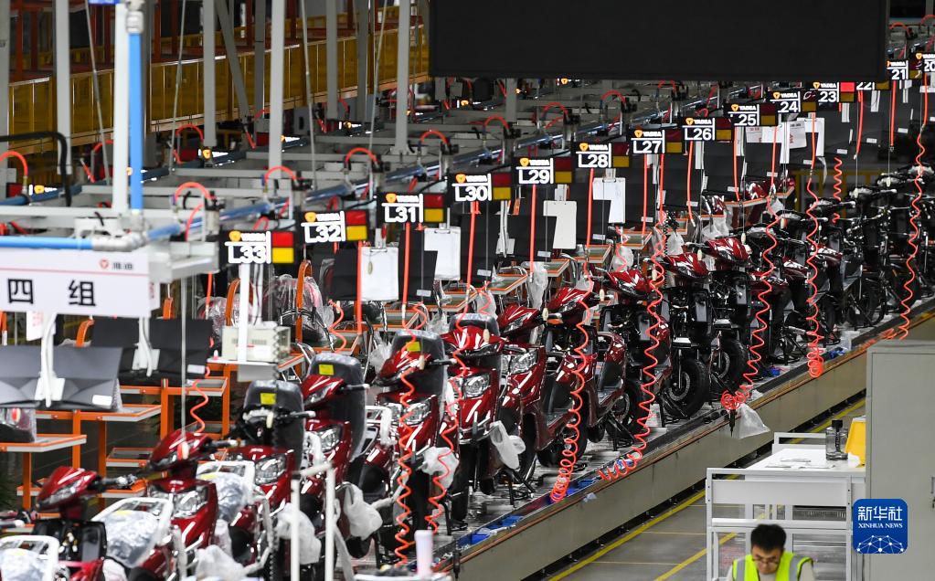 這是9月22日拍攝的雅迪集團重慶永川電動(dòng)車(chē)生產(chǎn)基地智能化生產(chǎn)車(chē)間作業(yè)現場(chǎng)。