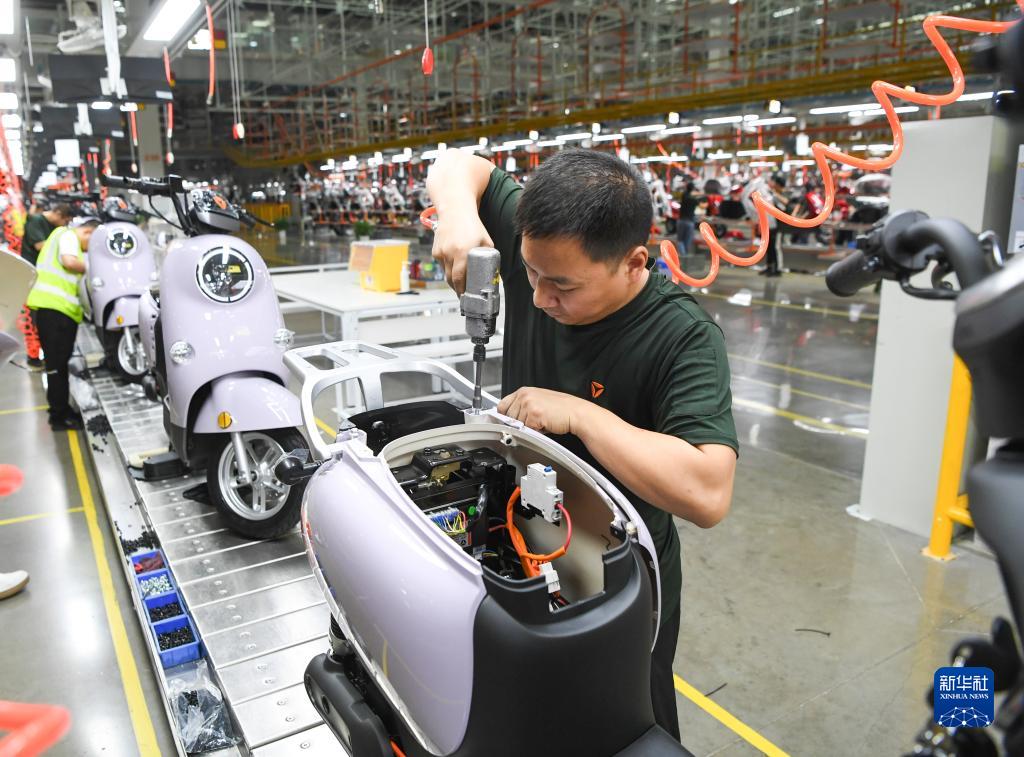 9月22日,工人在雅迪集團重慶永川電動(dòng)車(chē)生產(chǎn)基地智能化生產(chǎn)車(chē)間作業(yè)。