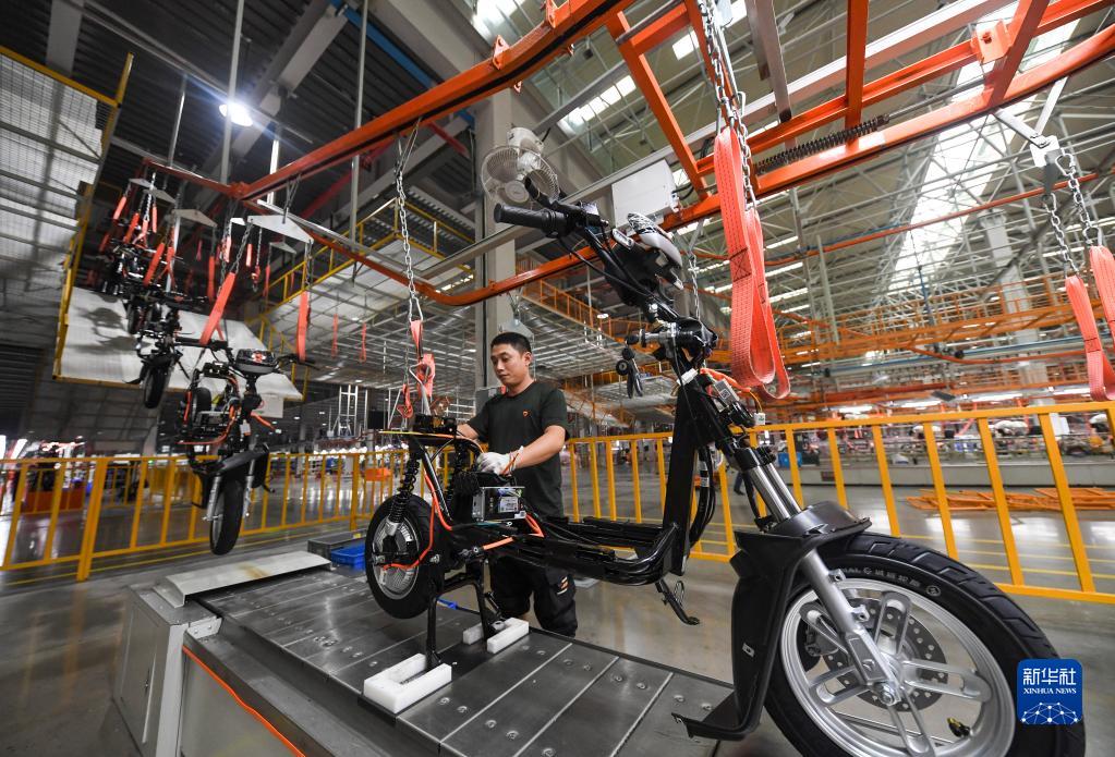 9月22日,工人在雅迪集團重慶永川電動(dòng)車(chē)生產(chǎn)基地智能化生產(chǎn)車(chē)間作業(yè)。