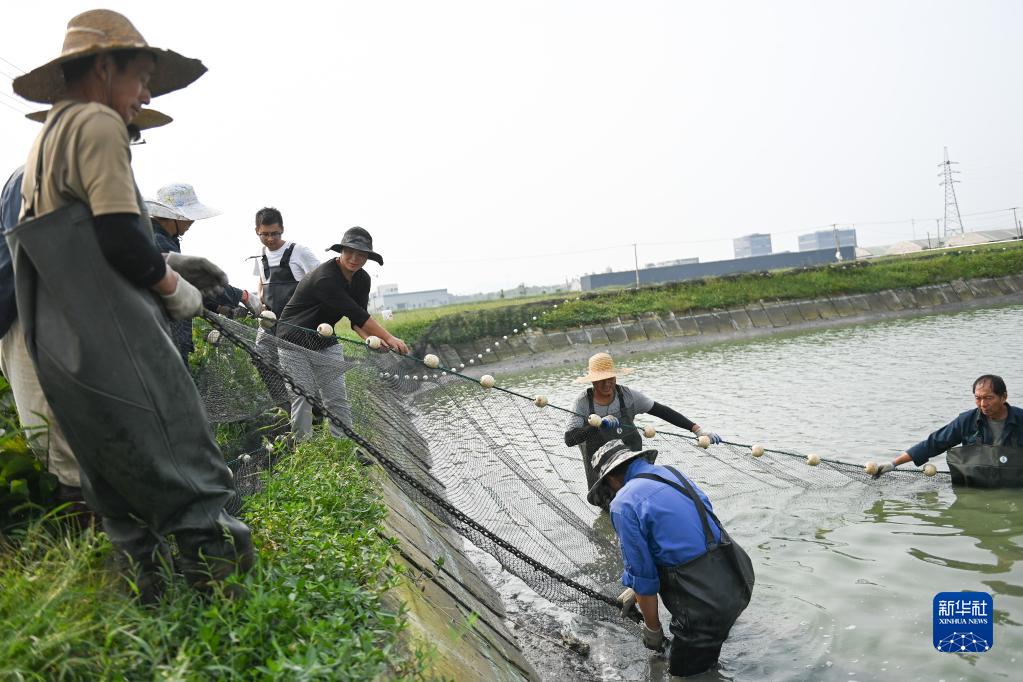 近日,浙江省湖州市吳興區八里店鎮豐盛灣水產(chǎn)養殖基地迎來(lái)沼蝦收獲季,工人們在蝦塘中圍網(wǎng)、捕獲、分揀、裝車(chē),展現出一幅具有江南水鄉特色的豐收圖景。