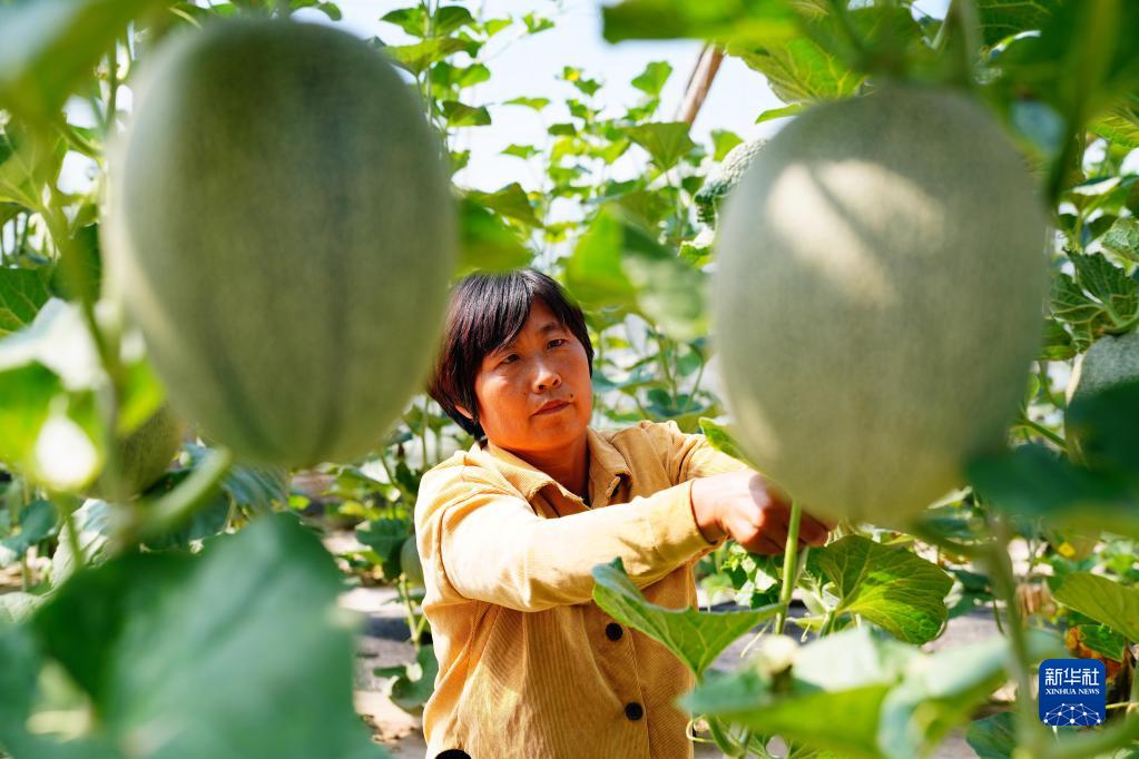 9月24日,在惠民縣胡集鎮哈密瓜種植基地,村民在打理瓜秧。
