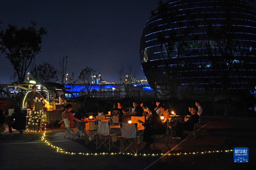 在南昌市紅谷灘區的一處空地,客人們在“7月末移動(dòng)小攤”聊天休閑(9月22日攝)。