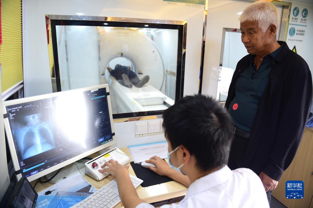 9月25日,滄州中西醫結合醫院放化療中心醫生在“移動(dòng)CT”室內為群眾進(jìn)行肺部影像檢查。