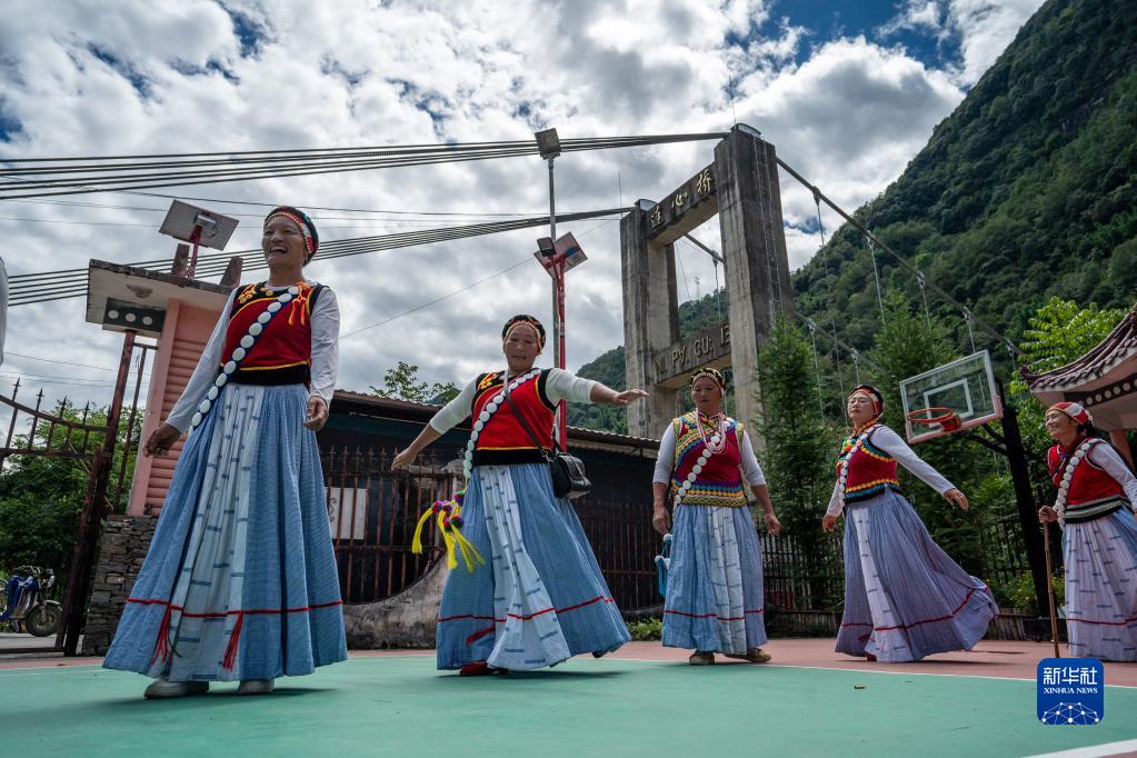 2022年9月14日,怒江州福貢縣石月亮鄉拉瑪底村村民自發(fā)組成的“奮進(jìn)合唱團”在村委會(huì )排練節目。新華社記者 江文耀 攝