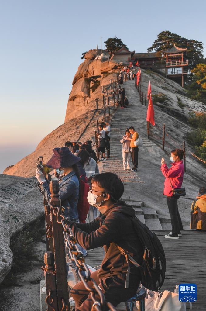 9月25日,游人在西岳華山西峰觀(guān)賞日落美景。