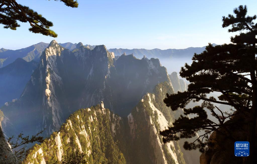 9月25日,夕陽(yáng)西下,雨后初霽的西岳華山,云霧縈繞,宛如仙境(無(wú)人機照片)。