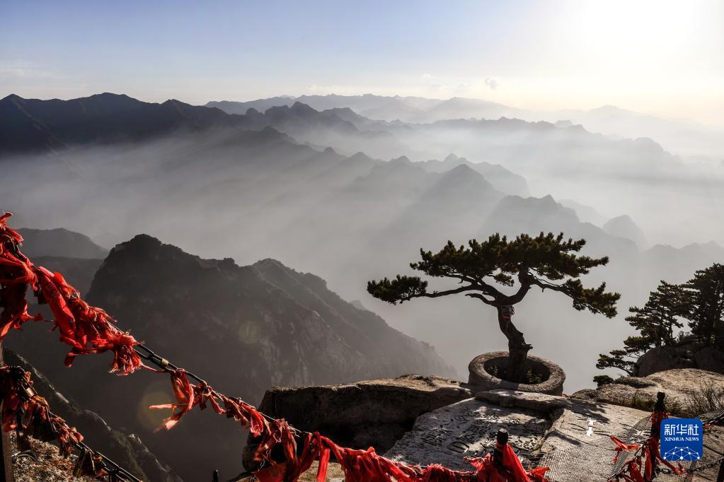 9月25日,夕陽(yáng)西下,雨后初霽的西岳華山,云霧縈繞,宛如仙境(無(wú)人機照片)。