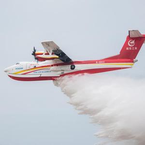 9月27日,“鯤龍”AG600M在進(jìn)行飛行投水功能演示。