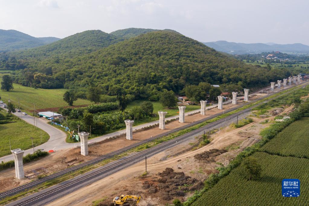 這是9月7日在泰國呵叻拍攝的中泰鐵路建設現場(chǎng)(無(wú)人機照片)。