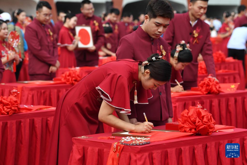9月27日,新人們在集體婚禮儀式現場(chǎng)。