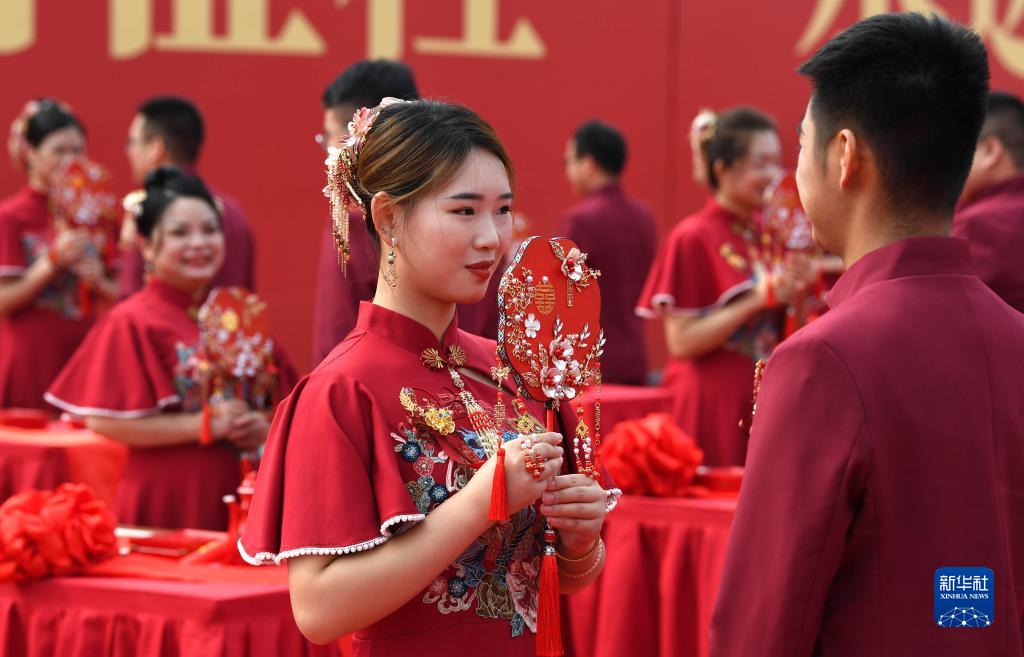9月27日,新人們在集體婚禮儀式現場(chǎng)。