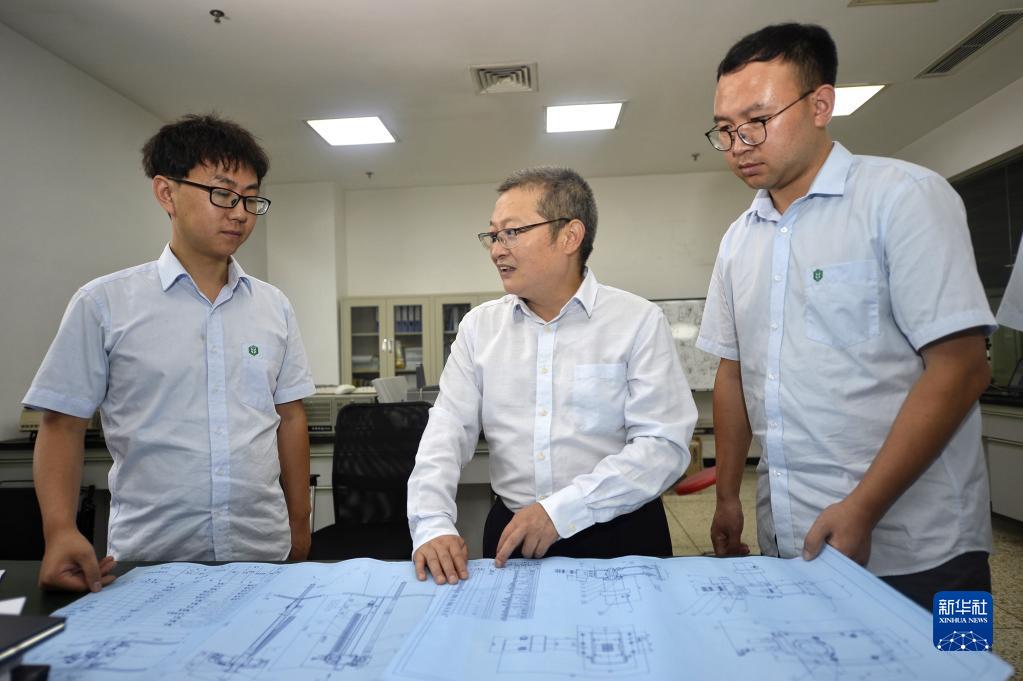 9月20日,在位于四川省成都市的中儲糧成都儲藏研究院,付鵬程(中)與團隊成員一起討論設計方案。