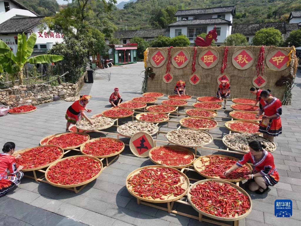 這是在湖南省郴州市汝城縣沙洲瑤族村拍攝的曬秋節現場(chǎng)(2022年9月15日攝)。新華社發(fā)(朱勇剛 攝)