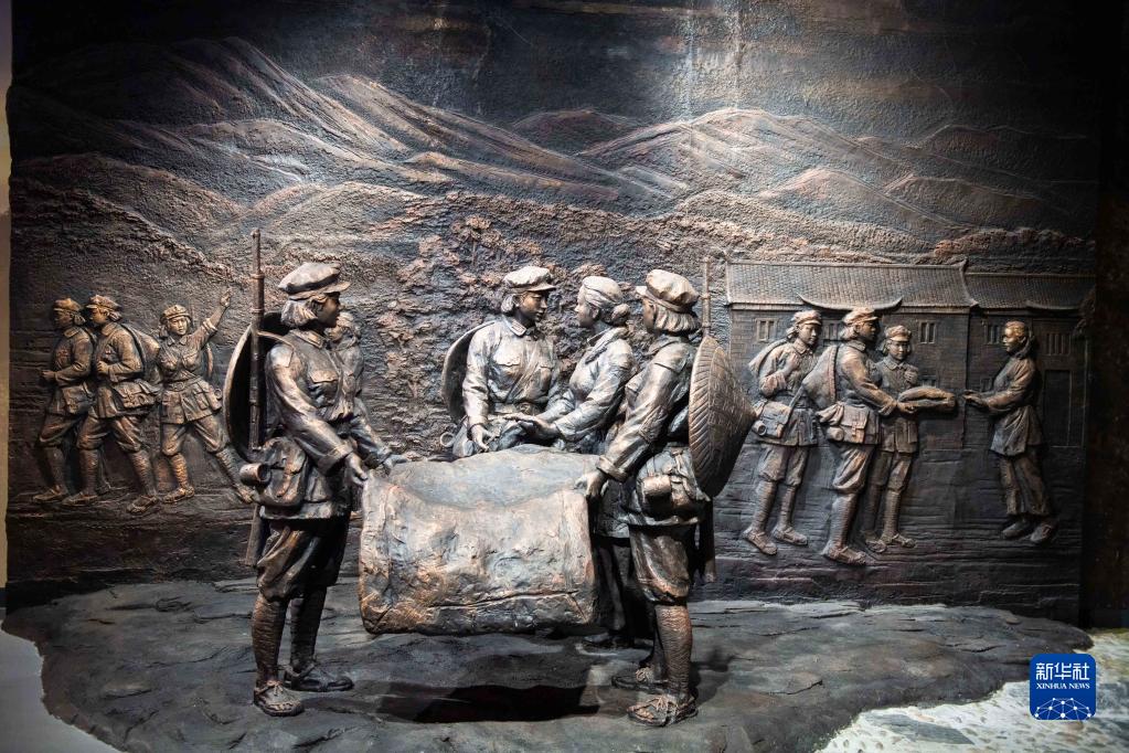 這是在湖南省郴州市汝城縣沙洲瑤族村“半條被子的溫暖”專(zhuān)題陳列館拍攝的“半條被子”故事場(chǎng)景雕塑(2020年9月17日攝)。新華社記者 陳思汗 攝