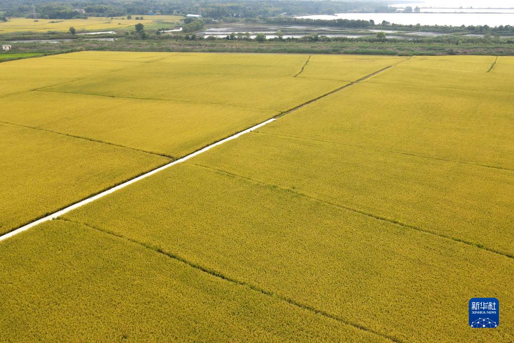 9月27日拍攝的安徽省郎溪縣飛鯉鎮的一處稻田(無(wú)人機照片)。