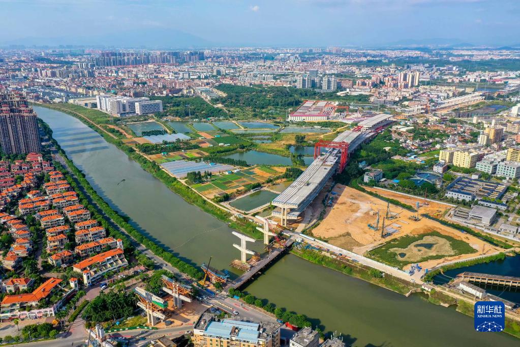 莞番高速貫穿東莞市十個(gè)鎮區,大量采用雙層橋設計有效節約建設用地(9月27日攝,無(wú)人機照片)。