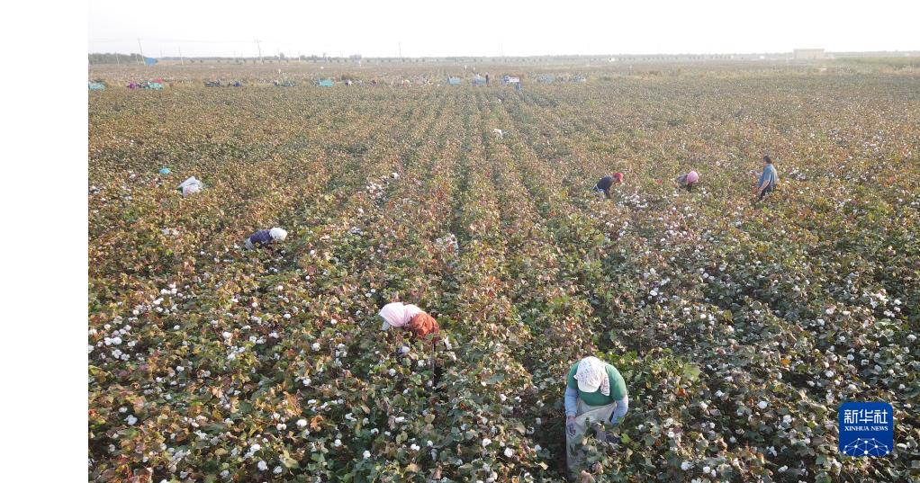 9月28日,山東省濱州市無(wú)棣縣西小王鎮棉農在采收新棉。