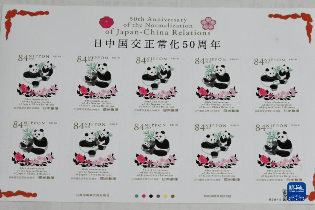 這是9月29日在日本東京拍攝的“日中邦交正?;?0周年”紀念郵票。