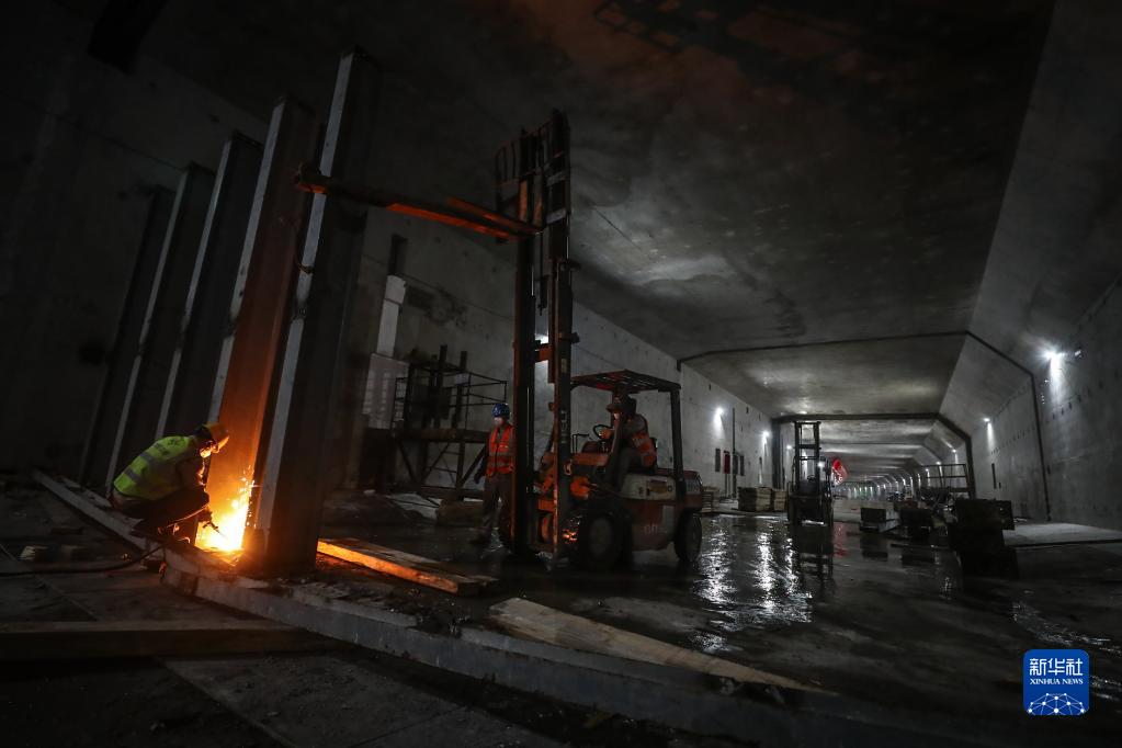 9月29日,工人在大連灣海底隧道內施工。 新華社記者 潘昱龍 攝