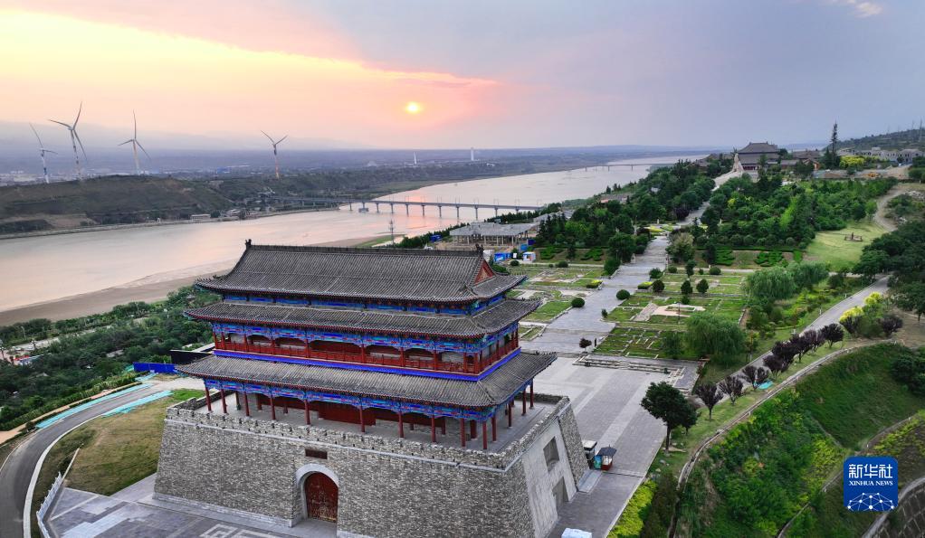 這是5月26日拍攝的朝霞中的潼關(guān)古城景區(無(wú)人機照片)。
