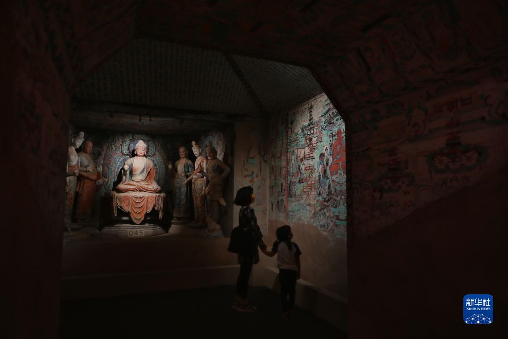 9月29日,觀(guān)眾參觀(guān)等比例高保真數字化3D打印復制的敦煌莫高窟第45窟。