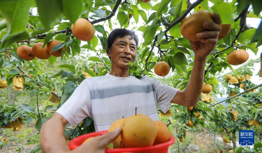 9月29日,果農在貴州省貴陽(yáng)市開(kāi)陽(yáng)縣石頭村采摘黃梨。