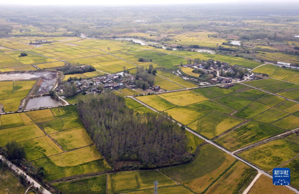 9月29日在安徽省合肥市肥東縣古城鎮拍攝的稻田(無(wú)人機照片)。